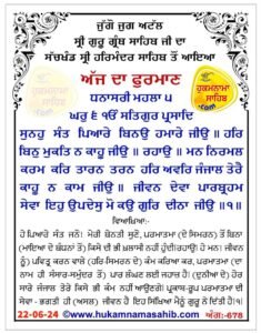 अमृत वेले दा हुकमनामा श्री दरबार साहिब, अमृतसर, अंग 678, 22-06-2024