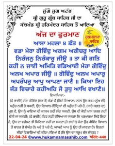 अमृत वेले दा हुकमनामा श्री दरबार साहिब अमृतसर, एएनजी 448, 22-04-2024