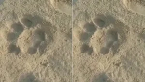 मानेसर पहाड़ी क्षेत्र के नजदीक बास गांव की शंकर की ढाणी में शनिवार को तेंदुए के पैरों के निशान दिखाई...