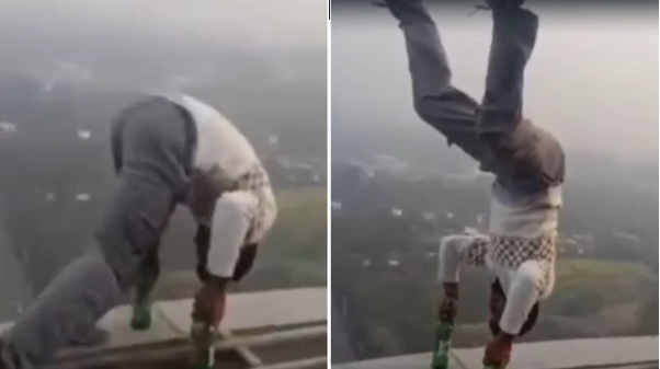 वायरल वीडियो में युवक टावर के बाहरी तरफ स्टंट करता नजर आ रहा है। युवक कभी पांव के बल उल्टा लटक रहा है तो कभी बियर की बोतलों पर हाथ के बल खड़ा हो रहा है। टावर के अंदर मौजूद भीड़ इस युवक का स्टंट देख रही है। युवक को स्टंट करते देखकर सुरक्षाकर्मी मौके पर पहुंचे और युवक को पकड़ लिया। इसके बाद युवक को डायल 112 के हवाले कर दिया गया। युवक राजस्थान के हनुमानगढ़ जिले का बताया जा रहा है। युवक ने पुलिस के सामने माफी मांगी है।