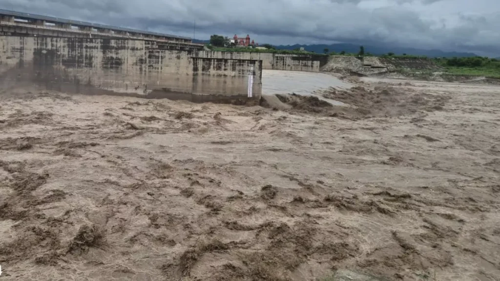यमुनानगर। पहाड़ों और यमुना नदी के कैचमेंट एरिया में भारी बरसात के कारण यमुना नदी उफान पर आ गई है। हथनी कुंड बैराज पर यमुना नदी में 2 लाख 71 क्यूसेक पानी चल रहा। यमुना की सहायक नदी सोम नदी में भी पांच हजार क्यूसेक जल बहाव चल रहा है।