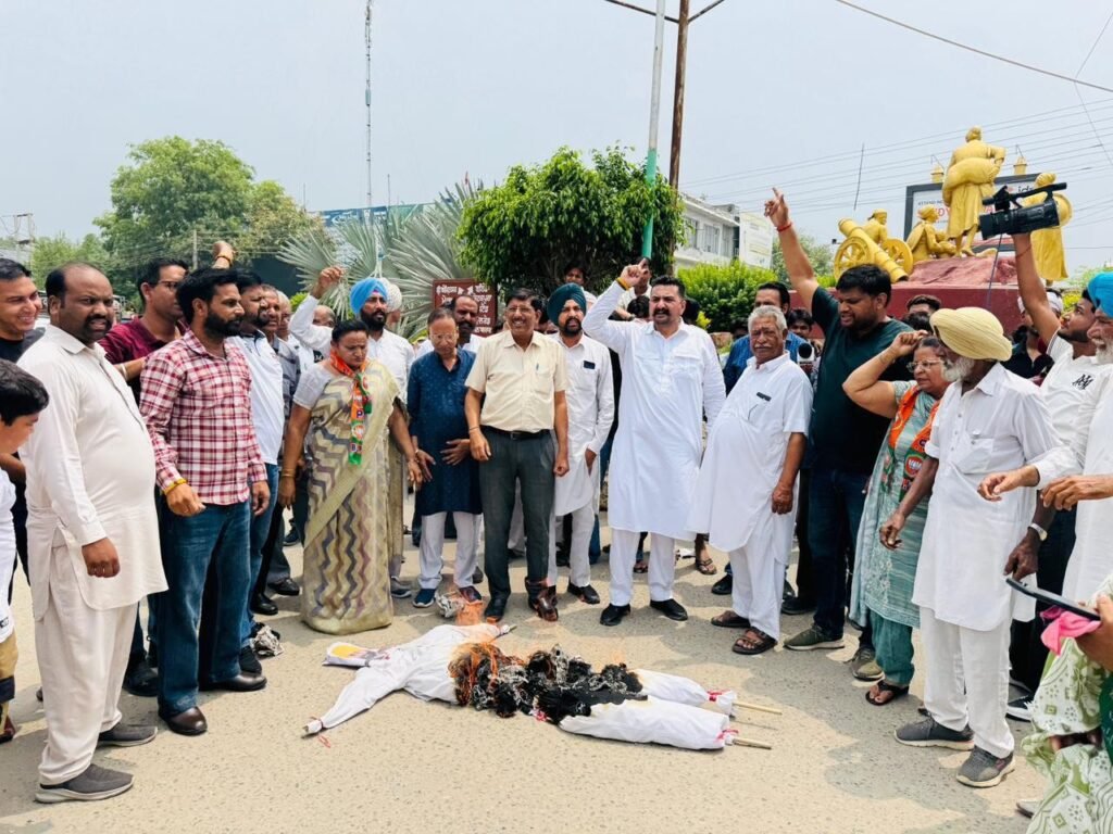 पंजाब के फरीदकोट में भाजपा कार्यकर्ताओं ने सीएम का पुतला फूंका, बिना शर्त माफी की मांग करते हुए जताया विरोध।