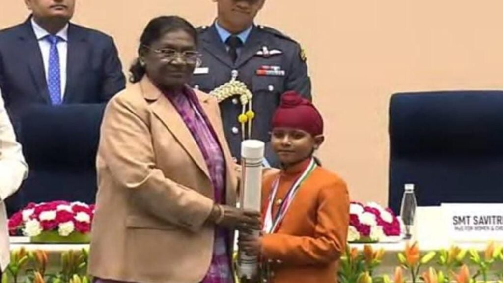 दिल्ली में राष्ट्रपति द्वारा ‘राष्ट्रीय बाल पुरस्कार’ से सम्मानित ‘लिटिल सोल्जर’ श्रवण को ऑपरेशन सिंदूर के दौरान निस्वार्थ सेवा प्रदान करने के लिए सम्मानित किया गया।
