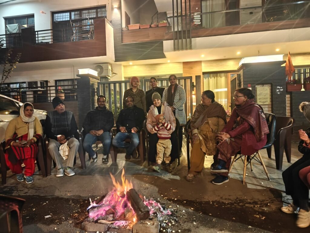 पंचकूला। सेक्टर-12A के रहवासियों ने उत्साह के साथ लोहड़ी का पर्व धूमधाम से मनाया। इस अवसर पर सेक्टर में अलग अलग जगहों पर अलाव जलाया गया, जिसके चारों ओर बच्चों ने पारंपरिक गीतों पर भांगड़ा-गिद्धा कर खुशियां साझा कीं।