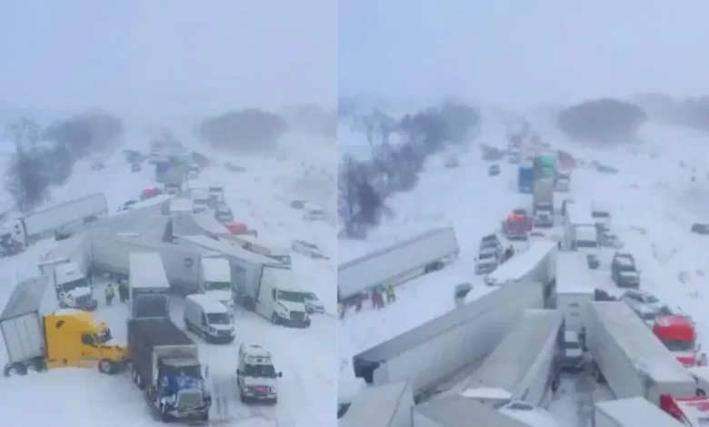 अमेरिका में बर्फीले तूफान का कहर, 100 से ज्यादा गाड़ियां टकराई, 30 से ज्यादा ट्रक फंसे